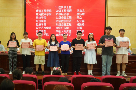 On the afternoon of April 20th, the opening ceremony of World Reading Day in 2023 and the award ceremony of "Read with the Whole School" of 2022 were held in the Second Lecture Hall. Party Committee members and vice presidents of the school attended the meeting, and more than 150 teachers, students representatives and personnel from Publicity Department, Student Affairs Office, Youth League Committee, Library, School of Management, School of Foreign Languages, School of Architecture and Engineering, School of Design and Art also were present. The opening ceremony was presided over by Yu Zhenghong, deputy director of the library.