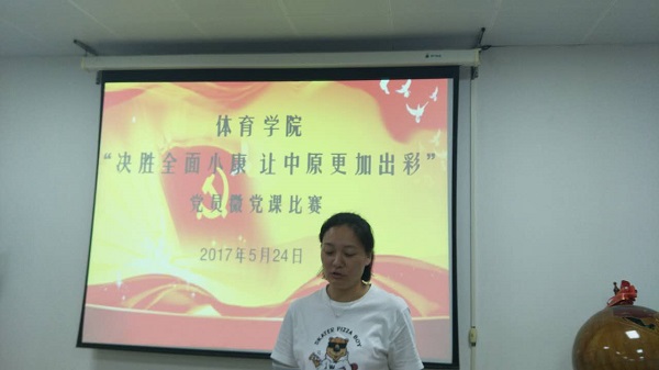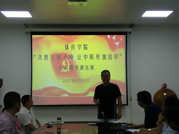 比赛中,一支部代表鲁枝鑫演讲,他以“忆改革开放,现中华雄威”为题,从军事,经济,文化三方面介绍了改革开放以来我党执政下中国的巨大变革,随后王显同志以“全面贯彻落实河南省高等教育事业“十三五”规划为题,与大家分享了河南省高等教育事业的发展与进步。