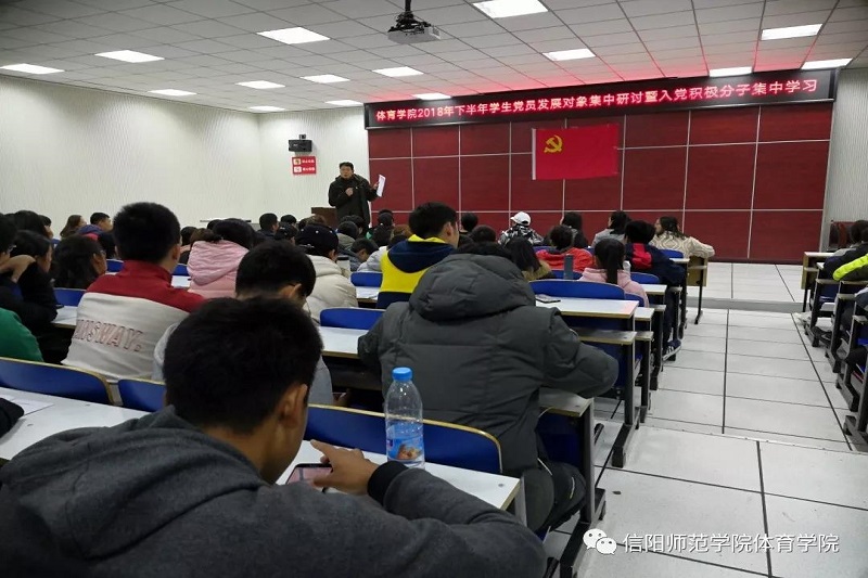 2018年11月7日晚,Ky开元集团2018年下半年发展对象集中研讨暨入党积极分子集中学习在体育馆多媒体教室举行。信阳师范学院第30期党员发展对象培训班Ky开元集团学员(Ky开元集团2018年下半年学生党员发展对象)17人,Ky开元集团入党积极分子160余人参加了学习。学习由Ky开元集团党委委员、副处级辅导员柴九昌主持。