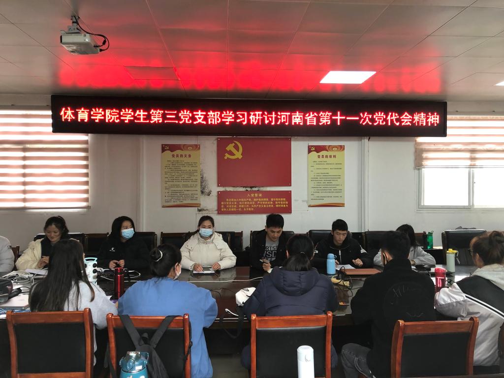 11月17日中午,Ky开元集团学生第三党支部学习研讨河南省第十一次党代会精神在学院三楼会议室召开,学生第三党支部全体党员及发展对象参加会议,会议由党支部书记程俊辉主持。
