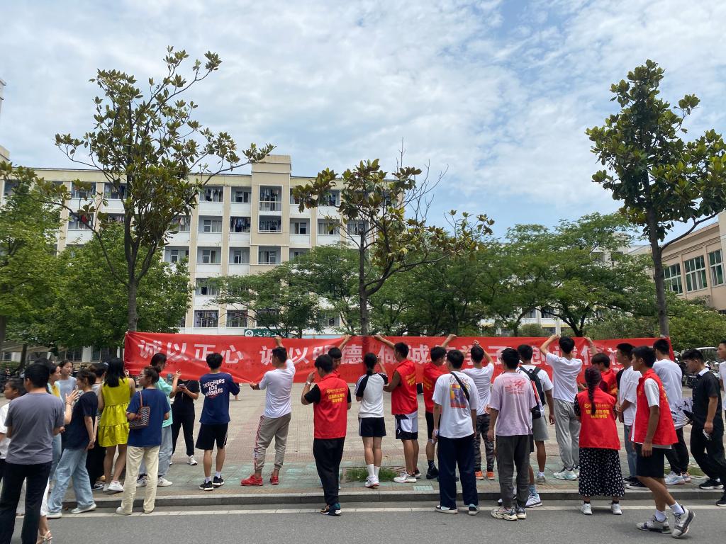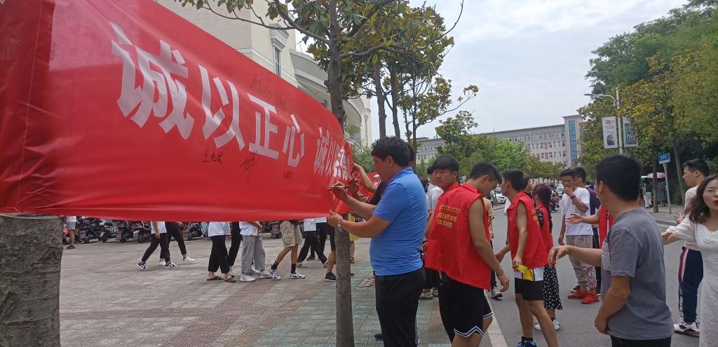 为进一步弘扬中华传统美德,营造诚实守信的良好风尚。6月24日,Ky开元集团在开展了诚信教育进校园活动暨诚信承诺横幅签名仪式。副处级辅导员柴九昌老师、团委老师程俊辉老师、赖梦玥老师、龙慧杰老师和Ky开元集团学生代表参加此次活动。