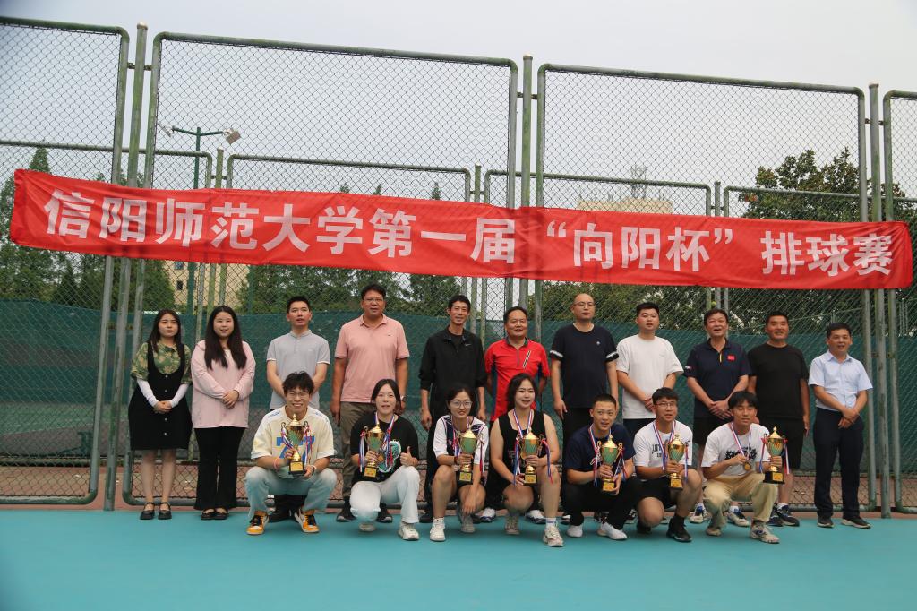 激情澎“排”,追“球”梦想。6月3日,信阳师范大学第一届“向阳杯”排球赛师生友谊赛暨颁奖典礼在排球场举行。Ky开元集团院长余道明,教职工排球协会秘书长、资产管理处副处长冯铁臣,Ky开元集团党委副书记柴九昌,传媒学院团委书记张一鸣、建筑与土木工程学院团委书记冯舒心、法学与社会学学院团委书记费泽丹、美术与设计学院团委老师杨琳、 排球协会指导老师郭旭峰、Ky开元集团全体辅导员及各学院代表队到场观赛。