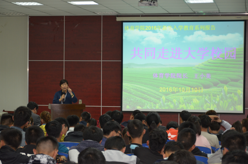 2016年10月10日晚,Ky开元集团王小美院长在体育馆多媒体教室为新生召开《走进大学生活》入学讲座。参加此次讲座的有Ky开元集团党委副书记严彬、Ky开元集团党总支秘书柴九昌、辅导员老师陈卓,及2016级全体新生。
