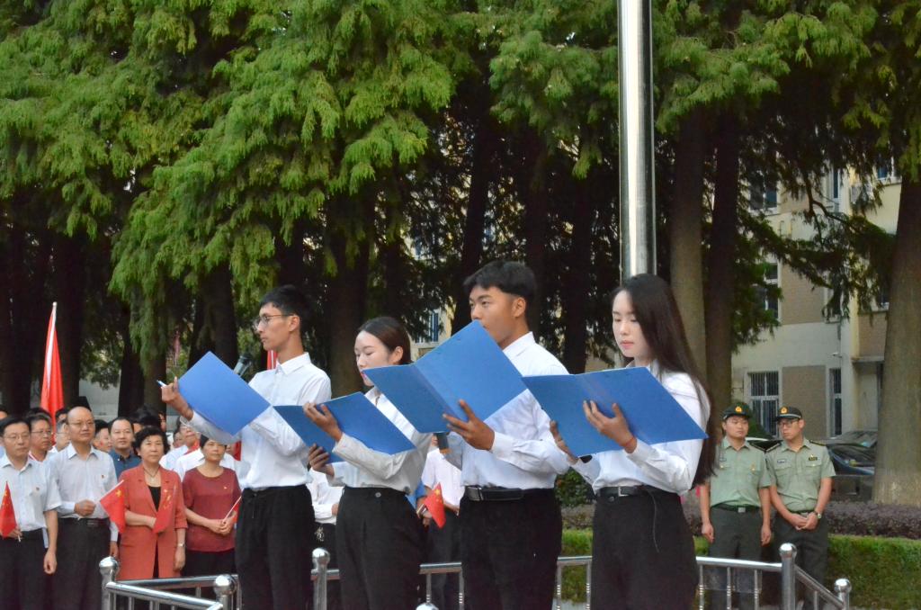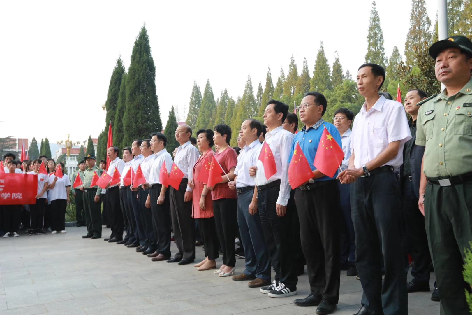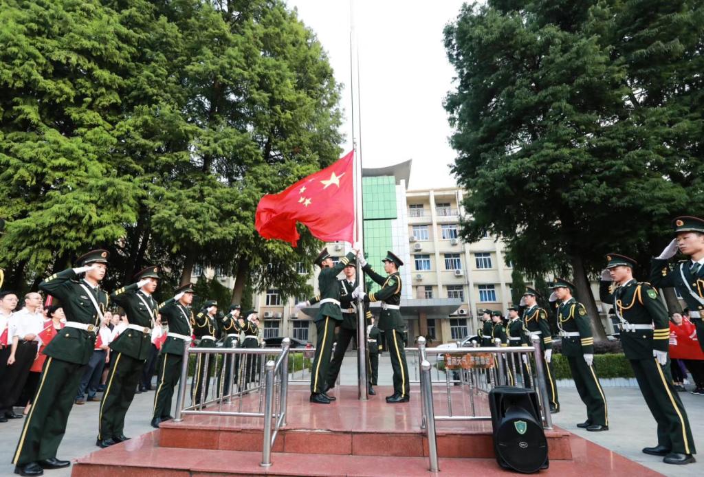 为庆祝祖国70周年华诞,也为进一步加强大学生爱国主义教育和国防教育。Ky官网于2019年10月1日日早6点半在行政楼前举行“致敬国旗,贺岁祖国”升旗仪式。校党委副书记郜火星,党委宣传部、党委学工部、校团委等单位相关负责同志参加。