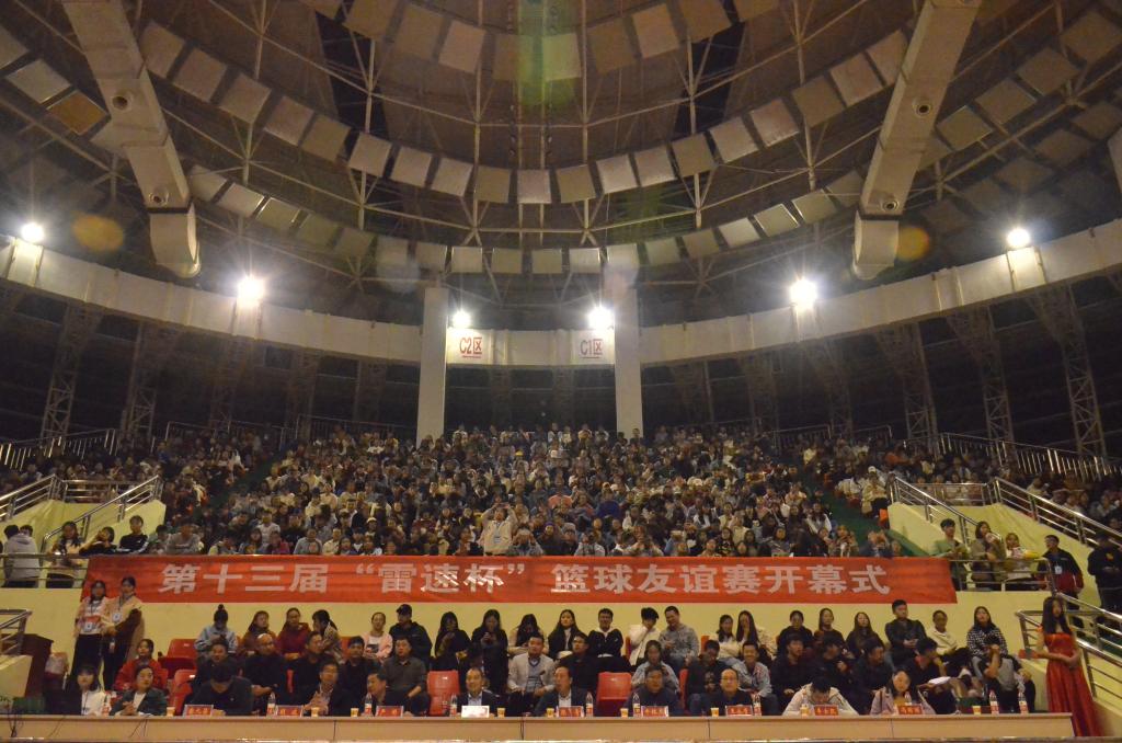 2019年11月14日晚上7点由Ky开元集团举办的第十三届“雷速杯”篮球友谊赛开幕式在信阳师范学院体育馆二楼隆重举行。出席本次篮球赛开幕式的领导老师有信阳师范学院校团委书记王建旭、校学生处副处长严彬、Ky开元集团党委书记陈青、传媒学院党委副书记胡波、商学院党委副书记王永贵、Ky开元集团副院长牛林杰、 Ky开元集团副处级辅导员柴九昌、雷速杯篮球赛主裁判丰士凯老师以及本次活动冠名赞助商雷速体育总经理冯丽丽以及各学院团委书记、老师、代表队及两千余名篮球爱好者。