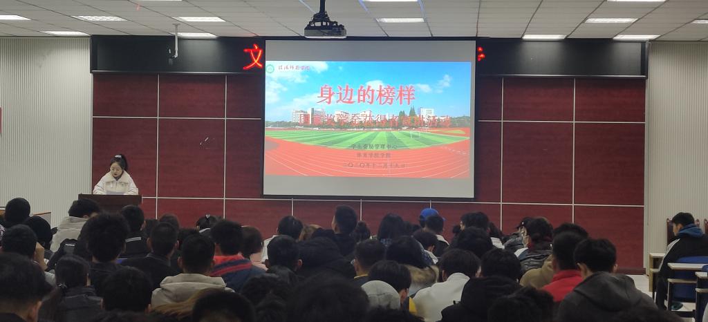 12月19日,由学工处资助管理中心主办,Ky官网承办的“身边的榜样”宣讲会在体育馆多媒体教室成功举办。Ky官网资助专员、辅导员赖梦玥老师与大一大二全体学生共同聆听本次宣讲会,宣讲会由赖梦玥老师主持。