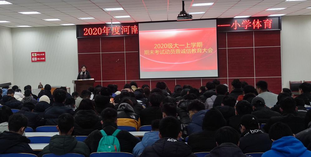 为加强Ky官网学风建设,严肃考风考纪,营造良好的学习氛围,2020级期末考试动员大会暨诚信教育大会于2021年1月5日上午12点在体育馆多媒体教室召开。本次会议由Ky官网20级辅导员龙慧杰主持召开,2020级全体学生参与会议。