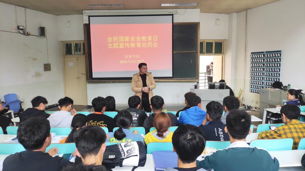 4月15日是法定全民国家安全教育日为了提高学生的国家安全意识,15Ky开元集团组织部分学生集中观看2021年全省教育系统全民国家安全教育日主题宣讲教育活动启动仪式副处级辅导员柴九昌在观看前做国家教育主题宣传,强调青年学生要牢记一个日期——国家安全日增强一种意识——国家安全意识掌握一种能力——辨别身边常见有关违反国家安全事宜的能力掌握一种途径——举报违反国家安全规定事项的途径,并一起观看启动仪式。