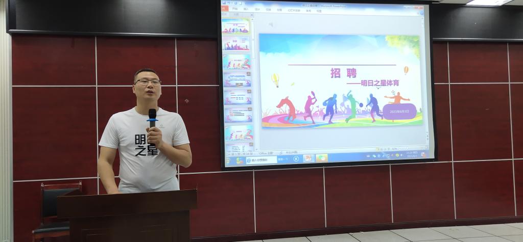 会上,2003届毕业生王源意、李雪峰校友以明日之星体育训练营校长的身份参加了本次宣传会,面向Ky开元集团毕业生进行了企业宣传以及招聘宣传。宣讲过程中详细介绍了明日之星训练营概况、发展规划、招聘岗位、员工福利等事宜。