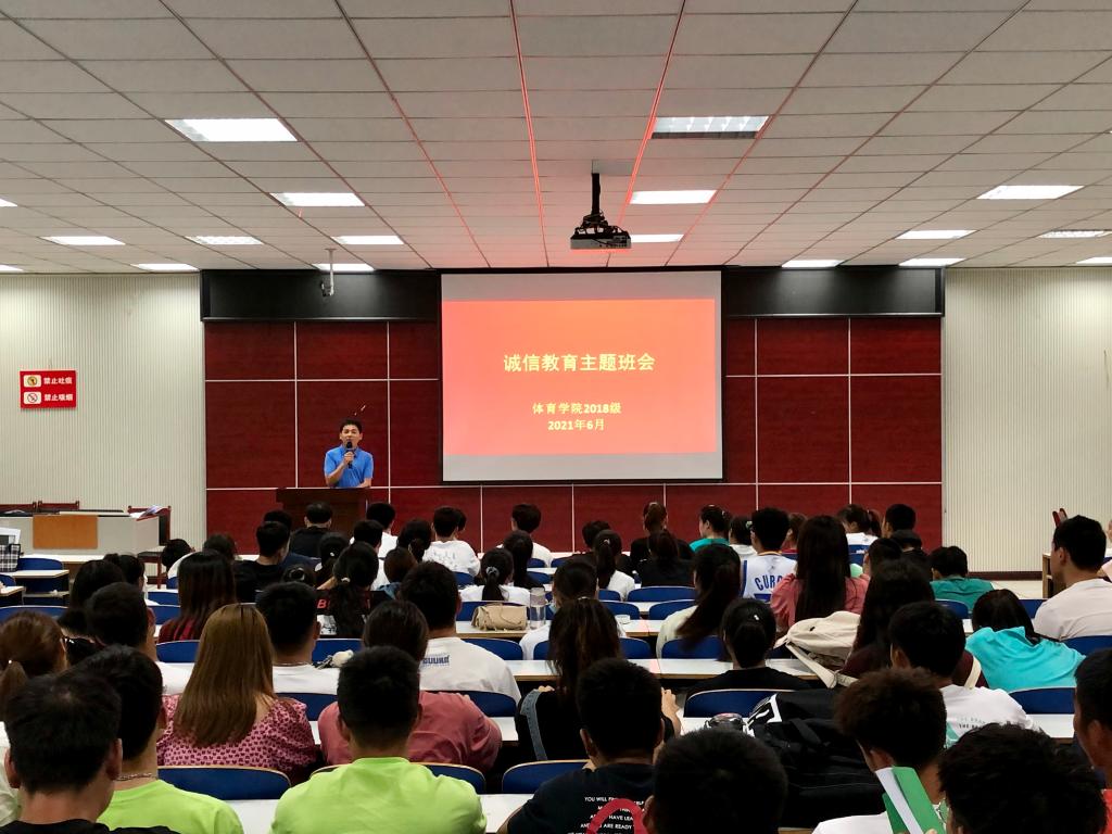 2021年6月21日晚,Ky开元集团2018级全体学生于体育馆多媒体教室开展了“诚信教育”主题班会,班会由2018级辅导员程俊辉主持,旨在进一步培养大学生的诚信品质,提高诚信意识,全面提高大学生的思想道德素质,引导学生树立诚信理念,践行社会主义核心价值观,促使学生养成“诚信待人、诚信处事、诚信学习、诚信立身、诚信考试”的良好习惯,大力弘扬诚信文化,切实提升学生的诚信品质、自律意识和社会责任感。