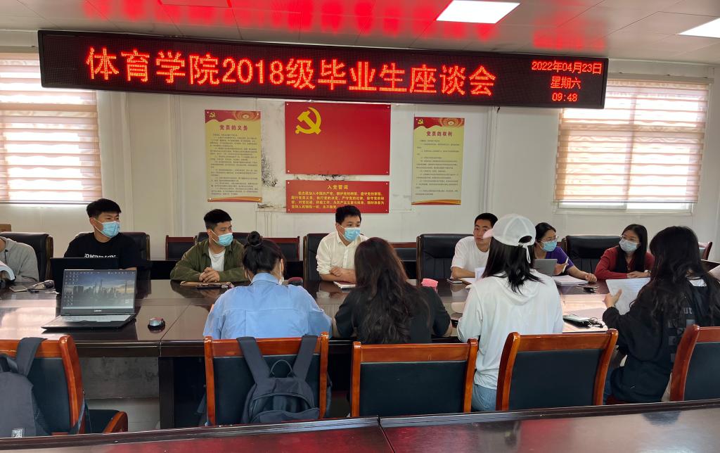 座谈会上,学生代表们就疫情防控期间自己及周围同学所关心的毕业典礼、学士服、论文答辩、求职就业、毕业照等一系列问题进行了咨询,并对学院在课程安排、学生管理、球馆等设施方面存在的问题提出了意见和建议。程俊辉认真听取了学生代表们关心的问题,并逐一进行了细致详尽的解答,并表示会把大家的意见和建议及时反馈给学院。程俊辉希望2022届毕业生能倍加珍惜在学校的宝贵时光,自觉遵守学校相关疫情防控规定,带头守好校园疫情防控安全门;在学习和生活上积极调适自我状态,有条不紊的完成毕业论文和做好毕业答辩,把学院优良的学风继承和传递下去;在就业上保持积极主动、乐观向上的态度,最后以勇往直前、奋发进取的蓬勃朝气和青春活力,为绚丽多彩的大学生活画上最圆满的句号。