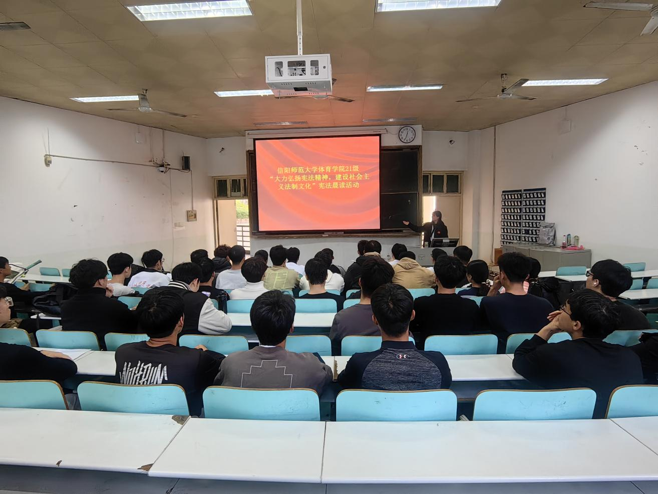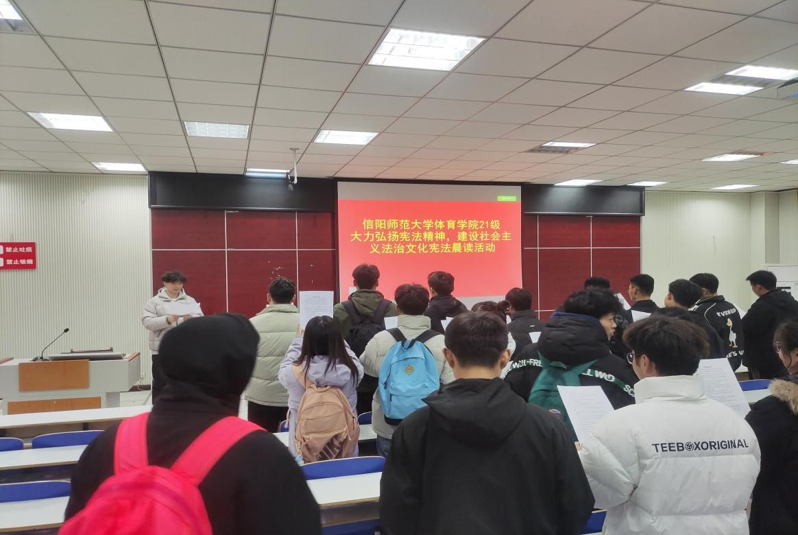 2023年12月4日是第十个国家“宪法日”,为深入贯彻落实党的二十大精神,大力弘扬宪法精神,营造良好法治氛围,12月6日早上,信阳师范大学Ky开元集团2021级学生在体育馆多媒体教室集中开展了“大力弘扬宪法精神,建设社会主义法治文化”为主题的宪法晨读活动,引导师生体悟法治精神,感受宪法权威。