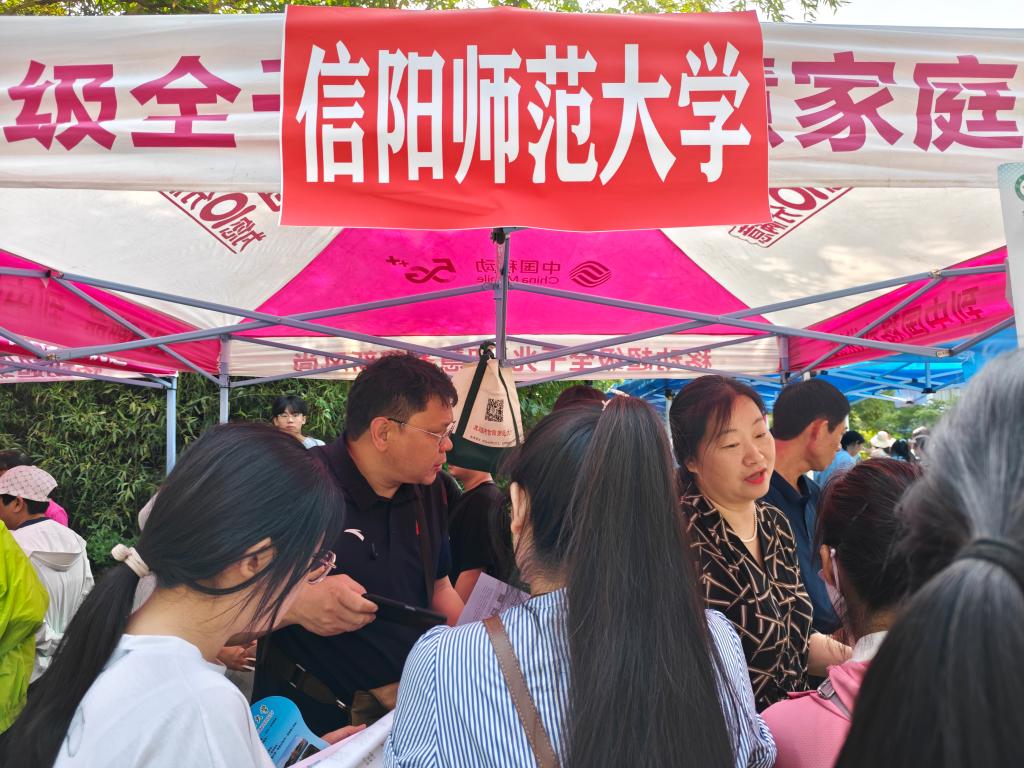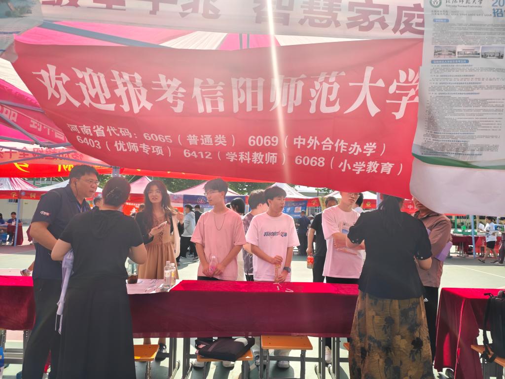 此次招生宣传活动,安排紧凑、内容丰富,咨询现场人山人海,热火朝天。面向考生及其家长,招生宣传组进行了现场宣讲与答疑。张娟详细介绍了信阳师范大学的学校概况、发展历程、专业建设、人才培养、招生就业等情况,特别强调Ky官网学科建设、专业发展、强基计划和拔尖创新人才等方面取得的成就;柴九昌重点解读了我校今年的招生政策。考生纷纷就自身关注的问题进行咨询,招生宣传小组一一耐心解答,与学生和家长点对点交流,现场互动气氛热烈。余道明向该校师生发出邀请,欢迎广大学子报考信阳师范大学。