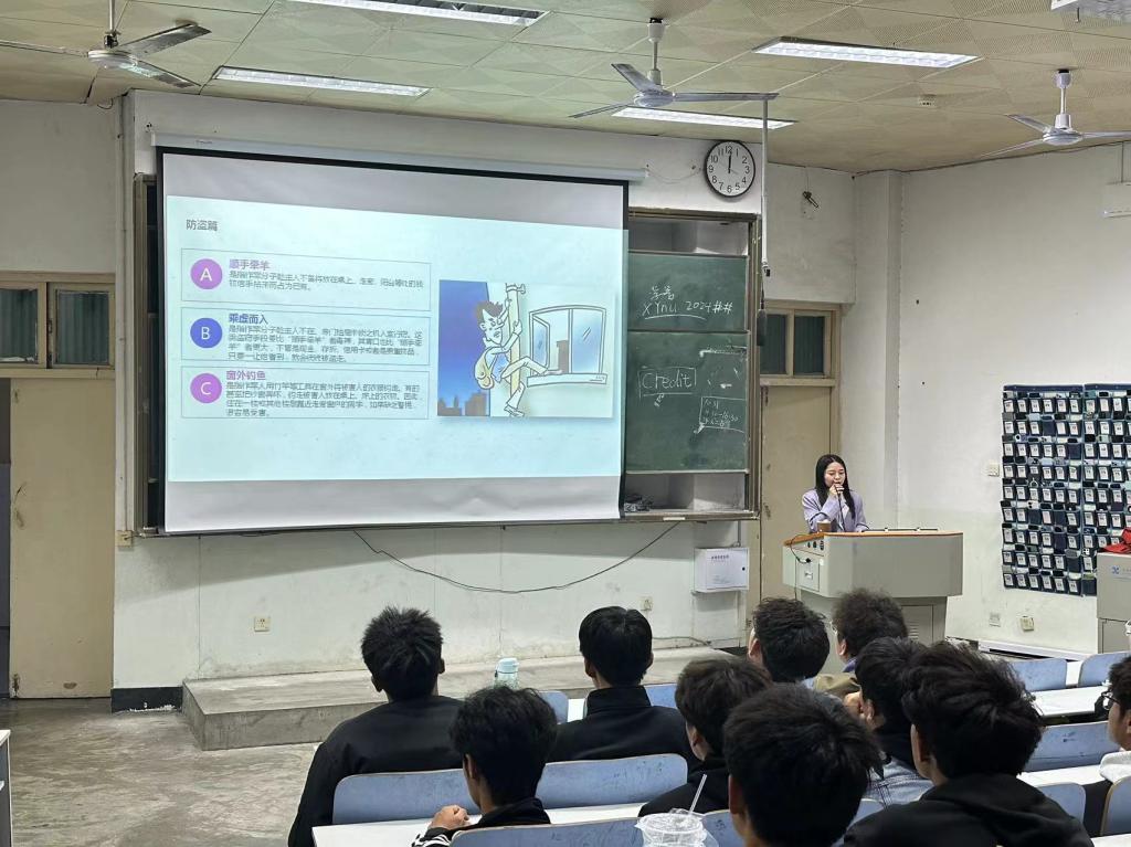 为了提高新生安全防范意识,增强自我保护能力,Ky开元集团于11月1日在人文楼楼110室开展以安全为主题的新生入学教育。本次讲座由24级辅导员赖梦玥主讲。