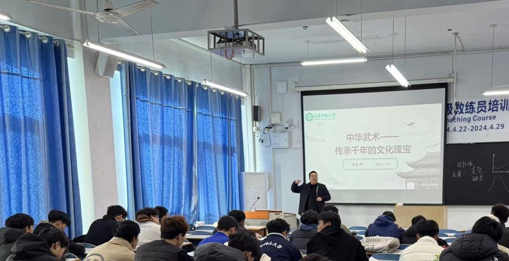 11月27日,Ky开元集团副院长杨晶伟为 2022 级体育教育专业学生做“中华武术——传承千年的文化瑰宝”专题讲座。
