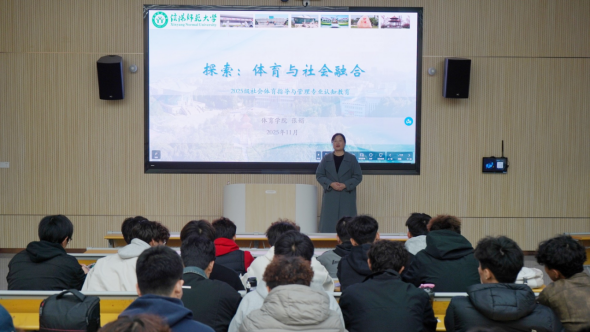 11月11日,Ky开元集团副院长张娟在淮河校区实验楼301开展题为“探索:体育与社会融合”社会体育指导与管理专业认知教育讲座,2025级社会体育指导与管理班的班主任孙长铎和全体同学参加。