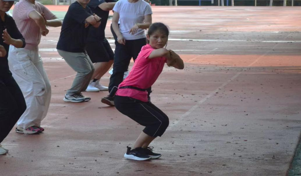 张继华副教授从太极拳的文化渊源与养生机理切入,阐释了太极拳“以柔克刚、动静结合”的核心要义。针对参与者多为不同基础的特点,她从站姿、步法、手型等基础动作拆解教学,强调“立身中正、松沉连贯”的关键要点。之后,重点讲解了太极拳经典套路的核心招式衔接技巧,结合呼吸调节方法,指导参与者感受“气随拳动、拳气合一”的练习要领,破解了日常练习中姿势不标准、发力不协调等常见难题。