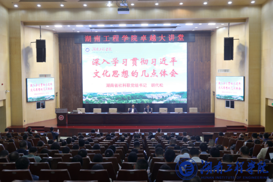 4月16日下午,beat365官网在一报告厅举行“卓越大讲堂”之干部培训学术讲座,湖南省社科联党组书记、副主席胡代松应邀作《深入学习贯彻习近平文化思想的几点体会》辅导报告。校党委书记黄昕主持报告会。湘潭市社科联党组书记、副主席李峰,学校中层以上干部、教研室主任、校社科联会员参加学习。