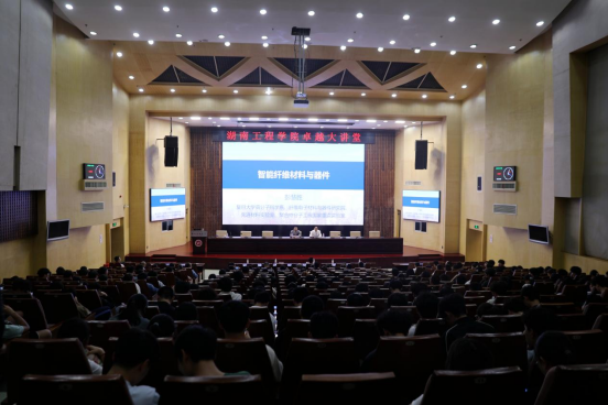 “卓越大讲堂之学术讲坛”主题报告环节,彭慧胜以“智能纤维材料与器件”为题,以其深厚的学术背景和前瞻性的研究视野,为师生们详细解读了高分子纤维材料与器件的最新研究成果。他介绍了团队在纤维太阳能电池、纤维锂离子电池、织物显示器件等技术上的探索,并深入剖析了这些技术的原理、应用前景以及对未来生活的影响。在他的生动讲解下,原本看似遥不可及的科幻场景逐渐变得触手可及,师生们仿佛从科幻走进了现实。彭慧胜还提到了科研工作中的挑战与困惑,分享了自己对一流科研工作的见解。