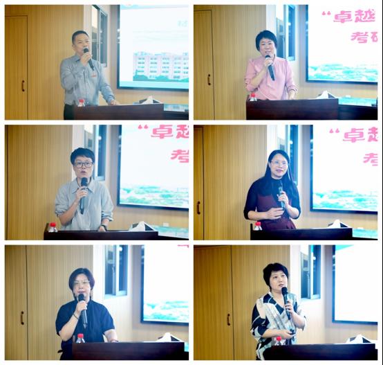 教务处处长方正军、学生工作部部长刘琤、招生就业与创新创业指导处处长李珍辉、图书馆(档案馆)馆长黄琴、研究生院(研究生工作部)院长任振华分别以“着力三个注重,助力学生考研上岸”“构建‘1234’工作法,助力学生成长成才”“以考研升学为抓手 助力毕业生高质量就业”“聚焦学生需求,图书馆多措并举护航考研学子”“‘卓越学风建设’之研究生奖助政策宣讲”为题作交流发言。