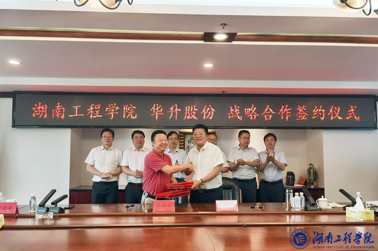 为促进产学研深度融合,加快科技成果向现实生产力转化,以市场需求为导向,培养企业发展需要的应用型人才,提升学校服务湖南省纺织服装产业高质量发展的能力,5月28日,校党委书记黄昕一行到湖南华升股份有限公司(华升股份)合作交流调研。在华升股份党委书记、董事长刘志刚,党委副书记、副董事长、总经理廖勇强,党委委员、副总经理黄建平,湖南华升服饰股份有限公司总经理吴洁纯等共同见证下,双方签署战略合作协议。