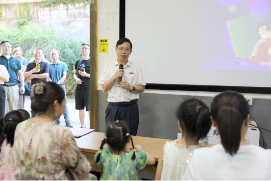 为提高全体湖工人的幸福指数,激发教职工子弟学习科学知识的兴趣、增强实践动手能力,以点带面促进全民数字素养与技能提升,7月4日,智能科学与工程学院迎来了一批教职工及他们的孩子,共同参与由湖南省全民数字素养与技能培训基地、校工会和工程训练中心科普基地联合主办的2024年湖南省全民数字素养与技能提升月活动曁beat365官方网站“135工程”建设之幸福湖工“大手牵小手”亲子科普研学活动。校党委书记黄昕出席,党委副书记向前主持活动。