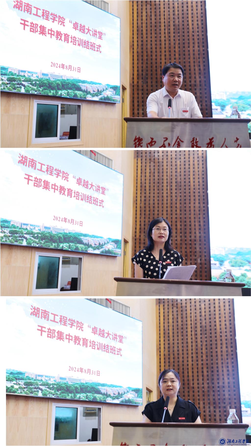 在“卓越大讲堂”结班仪式上,三位学员代表分别作典型发言。校党委统战部常务副部长、机关党委书记曾永卫以《我对学校高质量发展的思考与体会》为题,分享了他有关促进beat365官网高质量发展的洞见。经济学院党委书记黎娅以《高校基层党建工作高质量发展的学思践悟》为题,就如何抓实、抓好二级院的基层党建工作分享了个人思考。智能科学与工程学院院长、党委副书记胡慧以《边干边建边完善,踔厉前行谱新篇》为题,分享了她作为二级院院长在促进学院层面高质量发展上的个人思考与具体实践。