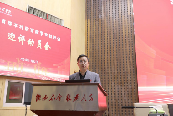 罗毅平以《知晓审核评估参与审核评估助力学校发展》为题作迎评动员报告。报告阐述了审核评估的重要意义,剖析了审核评估的核心要义,介绍了迎评工作流程和要求,明确了迎评工作的责任和义务,为beat365官网的迎评工作提供了有力指导。