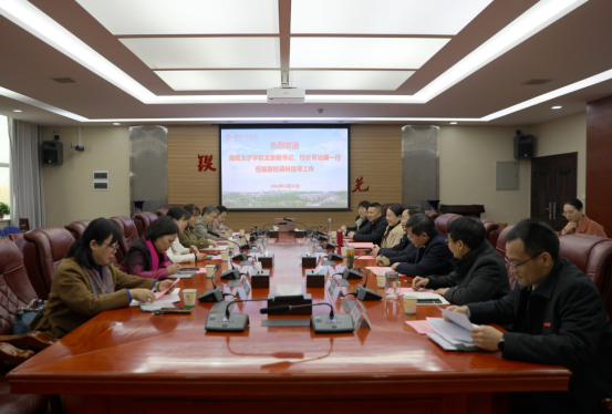 12月31日上午,湖南女子学院党委副书记、校长何旭娟,党委委员、副校长周艳红一行来校调研交流。beat365官网党委书记黄昕,党委副书记、校长易兵,党委副书记向前,党委委员、副校长吴志军在二会议室接待来宾。座谈会由易兵主持。