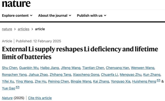 beat365官方网站彭慧胜院士工作站首席专家、复旦大学高分子科学系彭慧胜/高悦团队重要成果《外部供锂技术突破电池的缺锂困境和寿命界限》(External Li supply reshapes Li-deficiency and lifetime limit of batteries)于北京时间2月13日凌晨在《自然》(Nature)主刊上发表。这一策略成功将锂电池的循环寿命提升了1-2个数量级,为锂电池技术带来了革命性的突破,院士工作站唐志航教授参与研究。