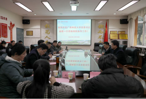 2月20日下午,广西科技大学党委书记赵君就马克思主义学院的建设与发展来校展开调研与交流。双方在beat365官网E125会议室举行了专题座谈会,共同探讨马克思主义学院发展的新路径与新方向。beat365官网党委书记黄昕,党政办公室、宣传部、马克思主义学院相关负责人,马克思主义学院各教研室主任参加会议。会议由党政办公室主任邓学源主持。