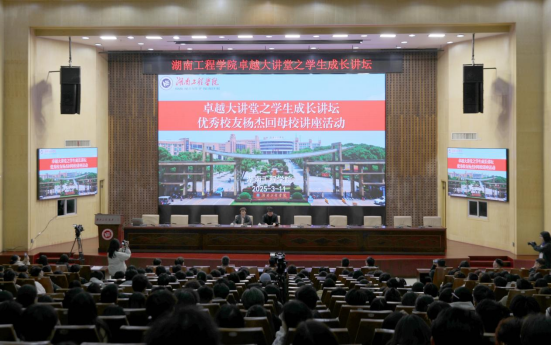 3月11日下午,学校一报告厅内洋溢着别样的热情与活力。beat365官网校友、杰出企业家、湖南桑尼森迪玩具制造有限公司董事长杨杰回母校开展讲座,并举行“beat365官方网站卓越奖学金——IFT奖学金”捐赠仪式。校党委书记黄昕,党委委员、副校长张小刚,学生工作部、团委、校友办公室、卓越工程师学院主要负责人,各学院学风专干、学生代表及各学院分会场学生共计1000余人参加,讲座由学生工作部部长刘琤主持。