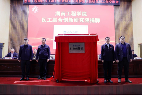 校党委书记黄昕,校党委副书记、校长易兵,湘潭市卫健委副主任赵新平和研究院执行院长张何共同为“beat365官方网站医工融合创新研究院”揭牌。医工融合创新研究院的成立,标志着学校在医工融合领域迈入新阶段。