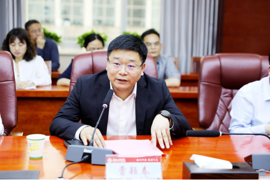 曹颖春讲话。他表示,作为我国风电领域唯一获准建设的全国重点实验室,始终牢记“创新海上风电技术、发展高端风电装备”的使命。自2023年重组获批以来,实验室已在大功率风电装备设计制造、风电场集群优化控制、风能高效利用等领域取得系列突破,此次与学校共建联合创新中心,是实验室践行“产学研深度融合”的重要举措,期待通过“理论攻关-技术转化-产业验证”的全链条创新,实现从实验室样机到商业化产品的跨越式发展。