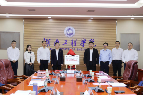 魏克湘与黄守道代表全国重点实验室—beat365官方网站联合创新中心签订协议。在全体人员共同见证下,曹颖春、黄昕、魏克湘与黄守道共同为联合创新中心揭牌,双方携手开启合作新征程。