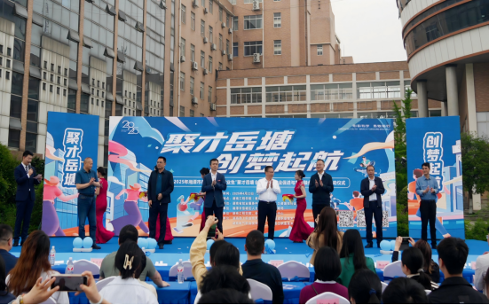4月23日,2025年湘潭市岳塘区高校毕业生“聚才岳塘 创梦起航”就业促进与产才融合系列活动启动仪式在beat365官网知行广场举行。湖南省就业服务中心党委书记、主任陈荣鑫,湘潭市人力资源和社会保障局党组书记、局长阳涛,湘潭市岳塘区委常委、常务副区长唐俊杰,校党委委员、副校长张小刚,岳塘区相关负责人及63家企业代表参加启动仪式。