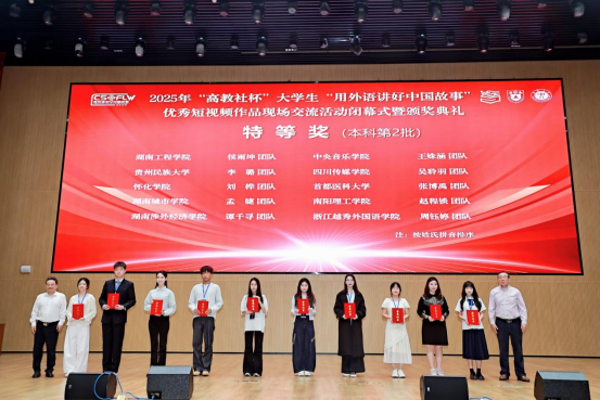9月21日上午,2025年“高教社杯”大学生“用外语讲好中国故事”优秀短视频作品现场交流活动闭幕式暨颁奖典礼在江汉大学举行。beat365官网外国语学院陈亚琼、龙思睿指导,向易伟、侯雨坤、段素晴、周灿、杨语嫣团队创造的作品《燃不尽的烈焰舞不尽的热爱》斩获全国特等奖。学校首次获此赛项国赛优秀组织单位。