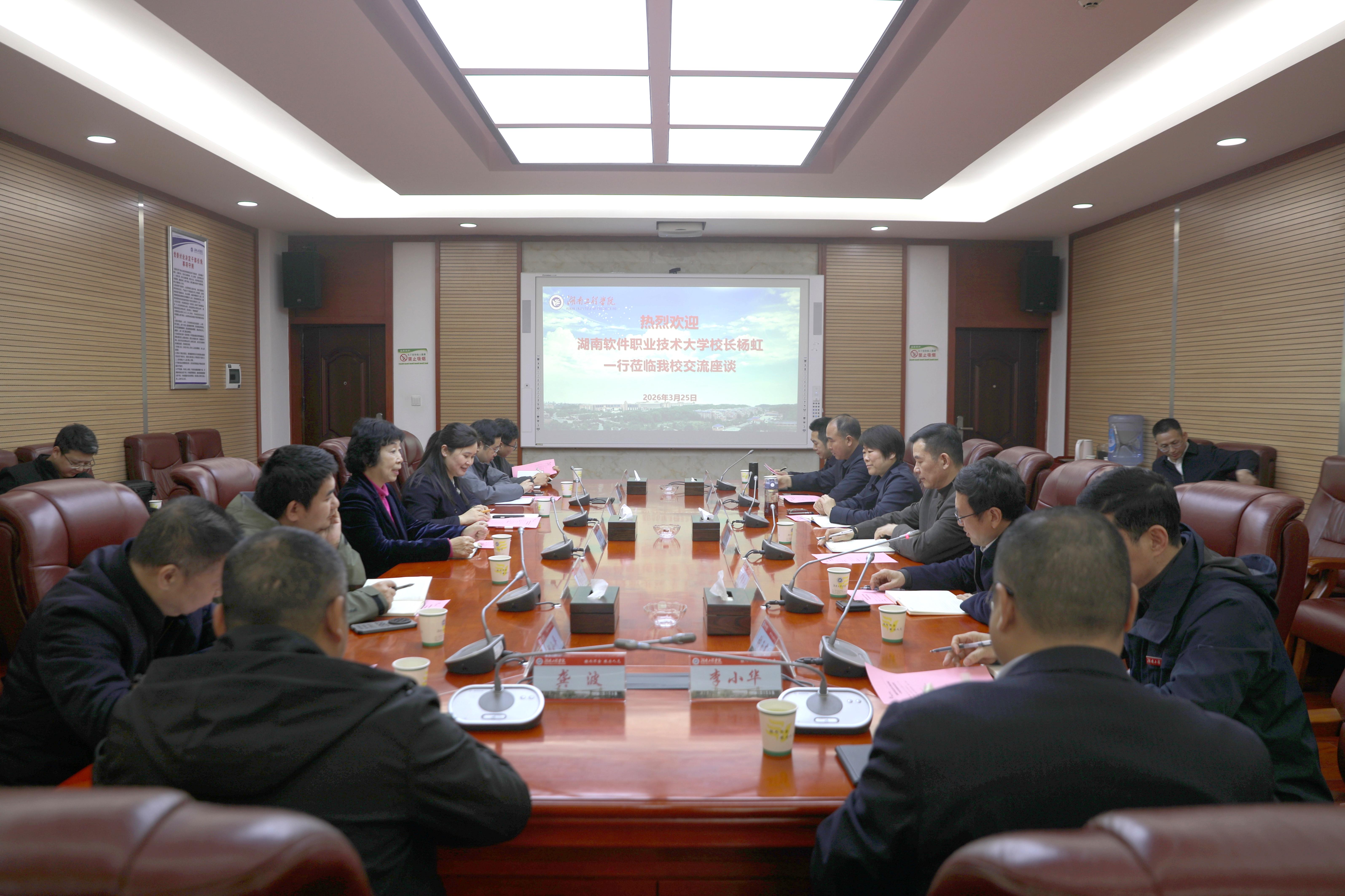 3月25日上午,湖南软件职业技术大学校长杨虹,党委书记、政府督导专员覃波带队赴beat365官网开展交流座谈与实地考察。beat365官网党委书记曹执令,党委委员、副校长罗毅平在电气楼一会议室接待来宾。座谈会由罗毅平主持。