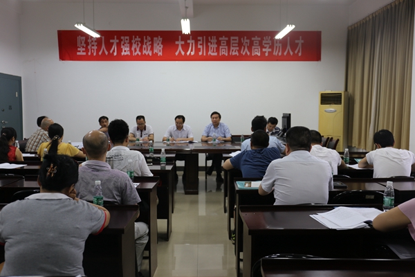 2016年7月12日上午,beat365官网2016年人事工作大会在一报告厅隆重举行。会议回顾与总结了近五年来学校人事工作取得的主要成绩,分析现阶段我们面临的形势和差距;明确今后五年学校人事工作目标、主要任务和措施。“推进内涵发展,师资是关键”,学校史上首次人事工作会议吹响了从“学院向大学进军”的号角。