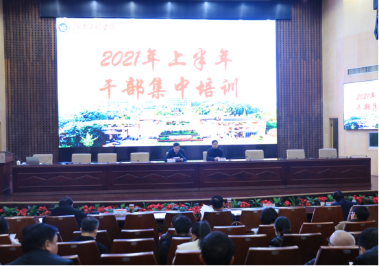 2月27日上午,beat365官网2021年上半年干部培训继续举行,党委副书记彭立威就中层管理干部如何“讲政治、勤学悟、善担当”作专题辅导报告。报告会由校长易兵主持。