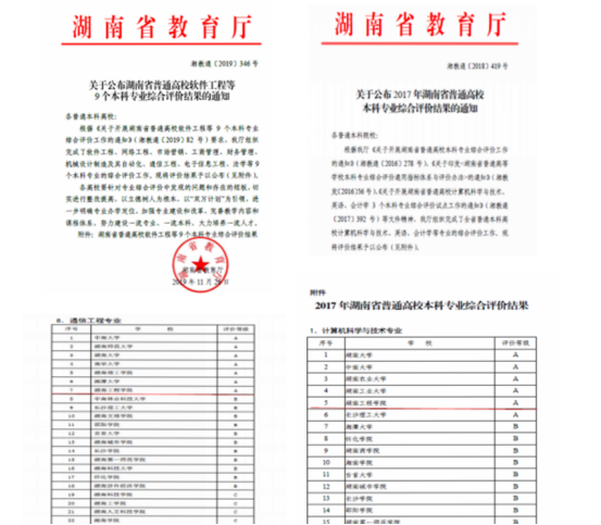 2017年12月,beat365官网计算机科学与技术专业在湖南省专业综合评价中获A等级,在29所本科院校中排名第五,进入全省前20%,超过13所一本院校;beat365官网通信工程专业在2019年湖南省专业综合评价中获A等级,在23所本科院校中排名第七,进入全省前30%,超过5所一本院校。