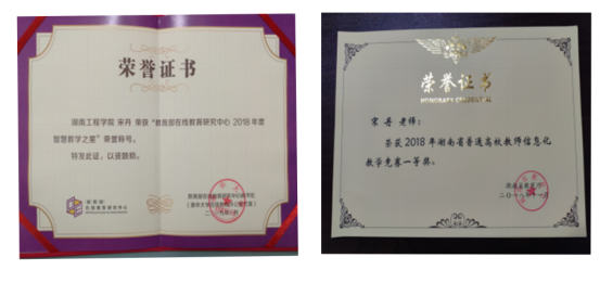 教学、科研方面,学院教师积极开展教研活动和教学竞赛活动,并取得了可喜的成绩:文中华老师获得第十二届湖南省高等教育教学成果三等奖;宋丹老师在2018年湖南省信息化教学竞赛中荣获一等奖,并获得2018年度教育部在线教育研究中心智慧教学之星荣誉称号,实现了beat365官网教师在省级高校教师信息化教学竞赛一等奖零的突破;学院还获省科技进步三等奖1项。