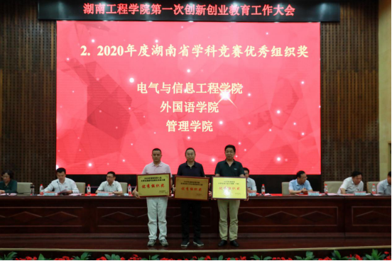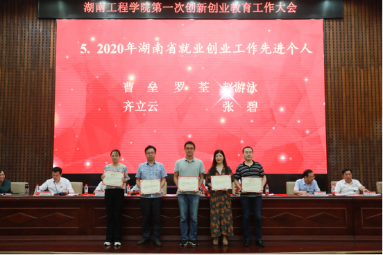 党委副书记彭立威宣读《关于表彰2018-2020年度就业创业工作先进集体、先进个人的决定》《关于beat365官方网站2019-2020学年创新创业奖学金获奖情况的通报》表彰文件。与会领导为获奖单位和个人代表颁奖。