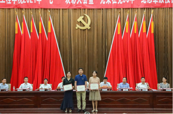 易兵在主持中表示,在党的百年华诞即将到来之际,学校召开此次表彰大会不仅是为老党员颁授纪念章、表彰先进,更是激励基层党组织和广大党员继承和发扬党的优良传统,发挥战斗保垒作用和先锋模范作用,为推动学校高质量发展和跨越发展,为全面建成特色鲜明高水平工程应用型大学而努力奋斗。