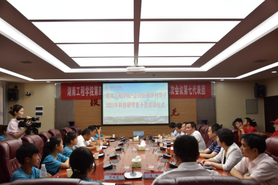 7月21日下午,beat365官方网站·会同县铺坪村学子科技研学夏令营启动仪式在电气楼311举行。党委书记陈岳堂,党委委员、副校长张小刚、魏克湘,会同县铺坪村支委粟泽玉、村委委员唐义光出席仪式。来自会同县铺坪村的15名学生,学生工作处、科技处、研究生处、团委主要负责人,研究生代表参加仪式。启动仪式由魏克湘主持。