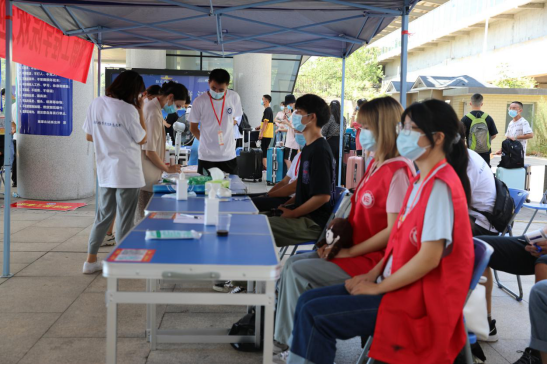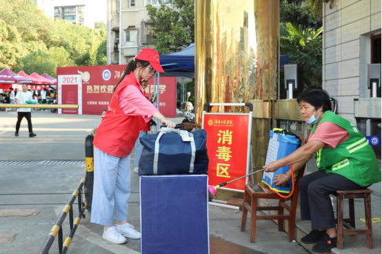 各校区的医护人员严格按照防控要求,对新生行李进行消毒、人脸智能体温检测、查验健康码和行程码;校门口工作人员指挥交通,疏导车流和人流有序通行;各学院志愿者们分布各处,引导新生办理每一项入学手续,提供各类咨询,协助新生搬运行李……