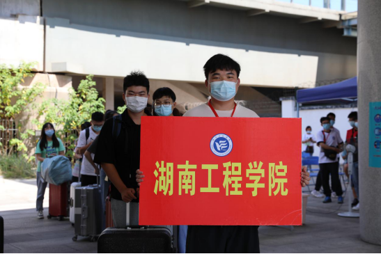 为减少交叉接触,学校在湘潭长途汽车站、湘潭北站、湘潭火车站等车站搭建迎新帐篷,配备体温枪、消毒液等防疫物资,安排新生接送车,让新生一站式到达学校。