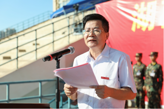张小刚作军训动员报告,他勉励同学们在军训期间不怕苦,不怕累,勇于挑战自我,以军人的情怀、军人的标准、军人的姿态圆满完成大学第一课。“木受绳则直,金就砺则利”,他希望同学们树立百折不挠、穷且益坚的人生信念,刻苦学习,超越自我,让青春的年华在未来的征途中绽放出灿烂夺目的光彩!
