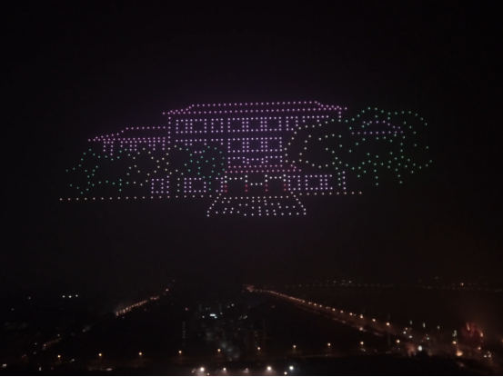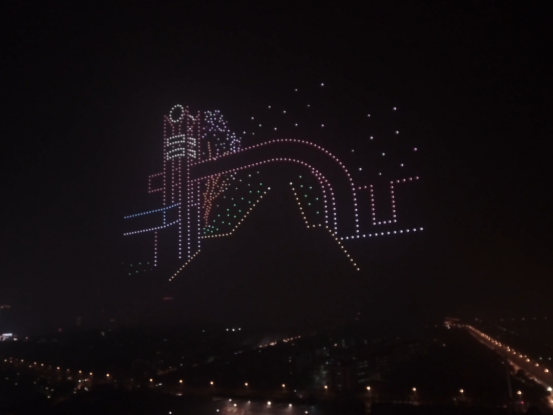 表演过程中,无人机逐渐形成“南校区校门”“红楼”“主校区校门”“校徽”等画面,让广大校友回忆起在母校的青春时光。“AI智能显示”“自动化机械臂绘制电路板核心”等图案展现学校特色专业;“锲而不舍 敢为人先”“初心为工 以工许国”等文字彰显学校精神底蕴;“70周年标识”“生日蛋糕”等造型祝福学校生日快乐;“我爱你中国”,以及飘扬的五星红旗图样压轴出场,最终幻化成烟花状绽放……不断变化的阵型排列,让所有人翘首仰望,尖叫和欢呼不绝。