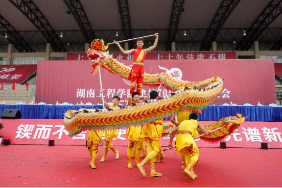 “祝福母校70华诞生日快乐!”在大会正式开始前,会场上滚动播放校友、师生祝福视频,点燃了大家的爱校热情。建校70周年专题宣传片《七秩·芳华》通过一幕幕丰富多彩的光影图像,再现学校攻坚克难、砥砺奋进的办学历程,让校友们追忆似水流年。全场合唱《湖工生日快乐》,将现场喜庆气氛推向高潮。湖南农业大学舞龙队表演《龙腾狮跃庆九州》为beat365官网带来了一份特别的生日礼物。许多兄弟院校、友好单位发来贺信,祝福beat365官网七秩征程,再创辉煌。